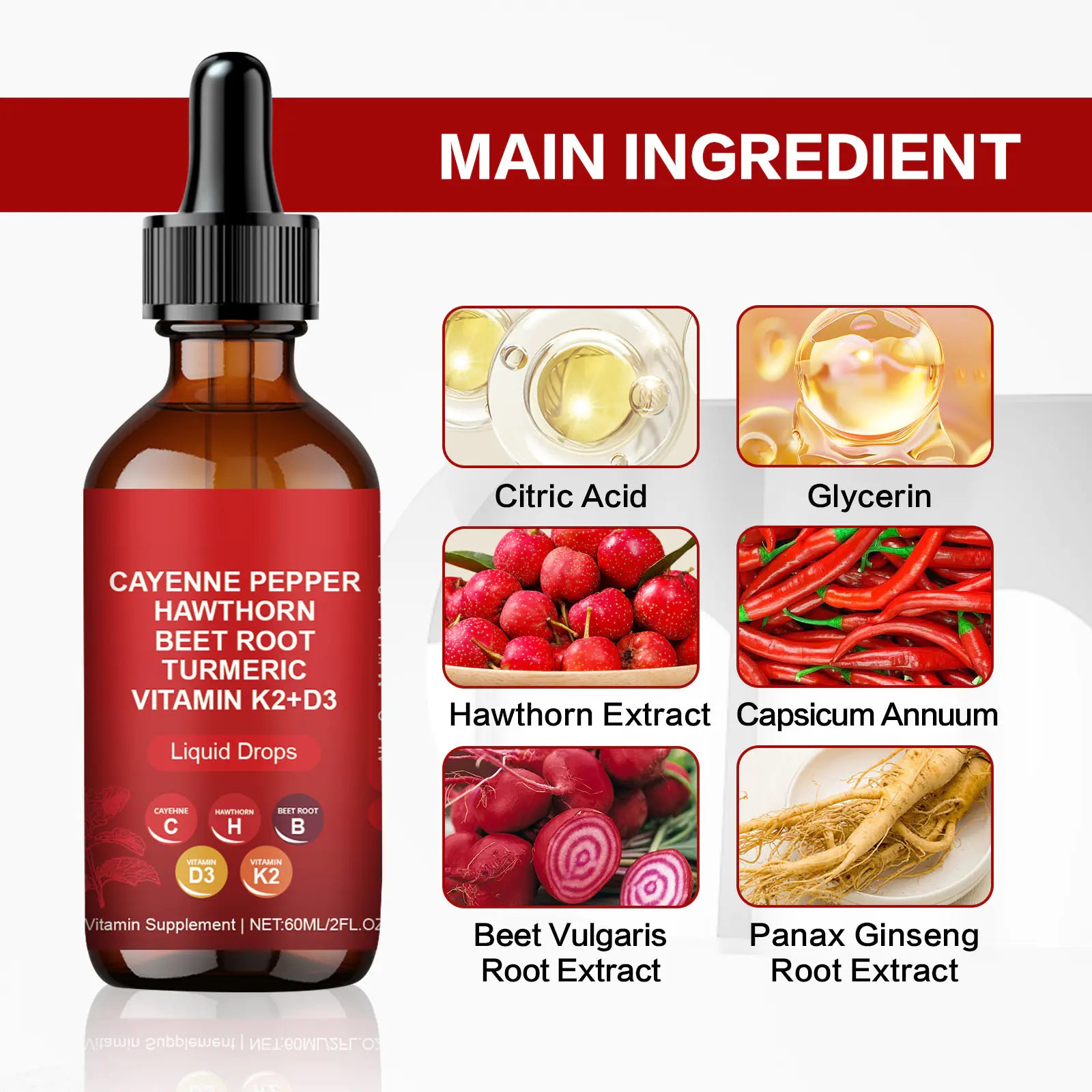 Combines pepper, ginseng, and ginger extracts.